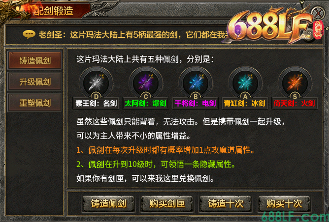 剑甲强化:可强化至10星,强化有几率失败但不会破碎